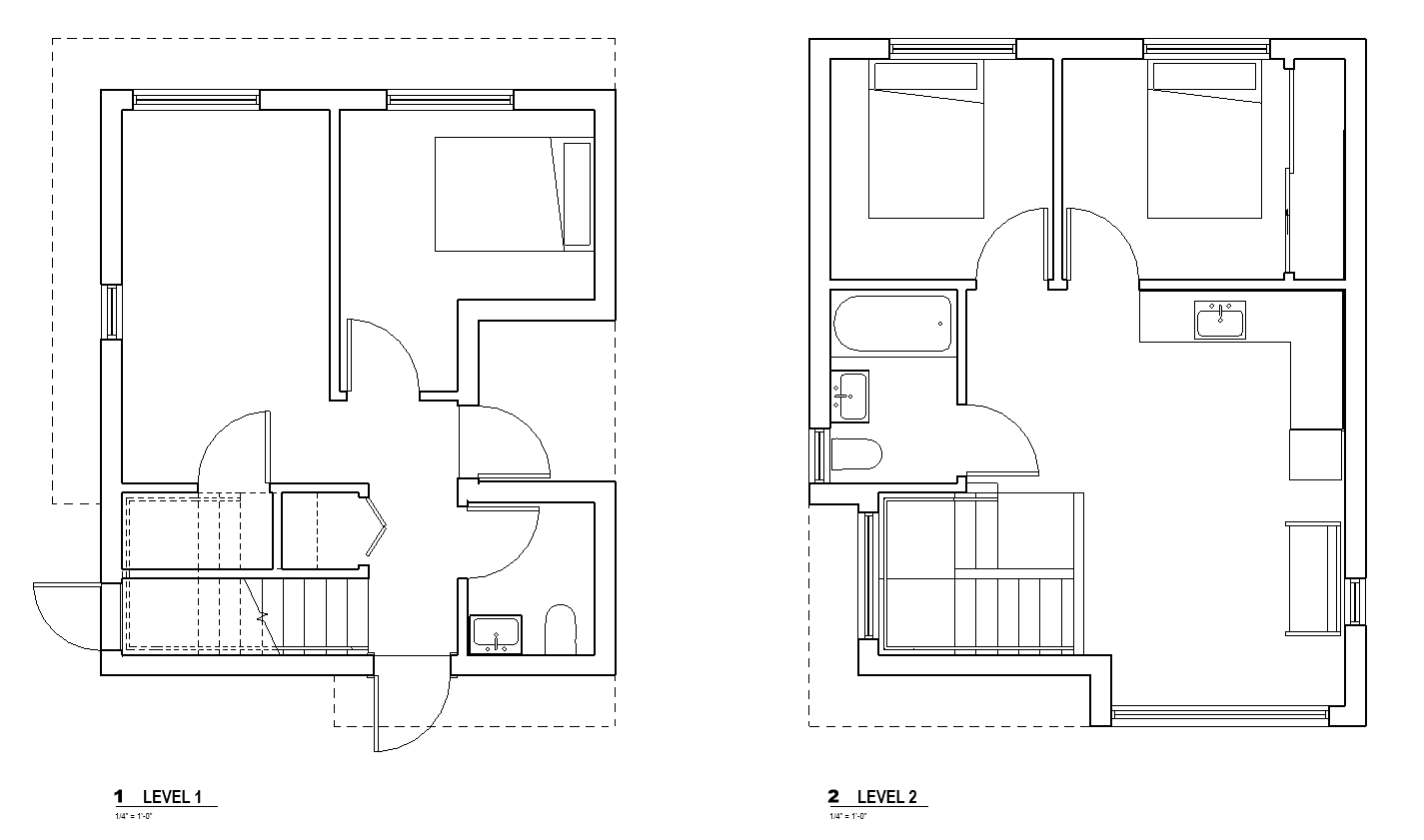 The owner wanted to maximize the number of rooms within a limited footprint. Every square foot is carefully allocated, fitting two levels of living on a compact site with three bedrooms, two bathrooms, and a recreation room.